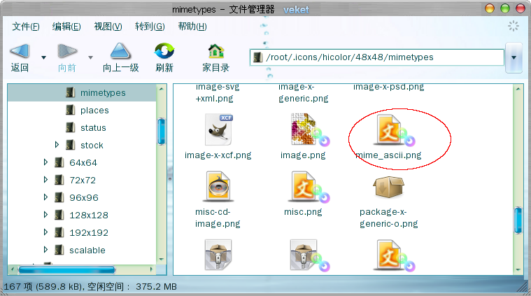 通常,我们在文件管理器里看到的某个文件呈现的图标,是由其文件类型关联到某个图标的,例如所有的文本文件就都显示同一个图标。Thunar文件管理器有自己的图标体系和图标主题,在veket里,图标比rox丰富一些。在这里我想稍微介绍一下veket的thunar文件类型图标的变迁。 最早,veket里thunar使用程序自带的默认图标,非常老而简陋的图标。 后来,有同学问为什么换图标主题thunar里的图标不变,我就把thunar里的文件类型图标图标和rox的文件类型图标做了关联,同时在图标主题里加入了文件类型图标,这个包在本坛分享过。后来的veket升级版本,一直都用这个关联的做法。但是,关联不是根本,根本是,需要有图标主题出来,这些主题还必须把文件类型图标包括在内,目前来说,似乎没人肯做这个,除了我先前做的一两套(做这个实在太耗时间了)。 veket升到系列5,觉得用一个小小的rox图标套装去关联大大的thunar图标套装,实在是有点可惜了。这样关联出来的thunar文件管理器图标很单调,只有很少几个文件类型有合适的图标。于是,直接用我为lucky8k-veket做的thunar图标套装取代了。当然,和rox图标主题的关联就没有了。 如果有同学不喜欢thunar文件管理器显示出来的图标了,自己要DIY,其实也是很简单的。 i)替换部分图标 主要就是这两个目录: /root/.icons/hicolor/48x48/mimetypes/ /root/.icons/hicolor/24x24/mimetypes/ 两个目录的图标是完全一样的,只是图标图片的大小不同,你可以先在48x48目录里找到你要替换的图标,替换成你要的图标图片(必须是48x48大小的),然后把图片压缩成24x24大小,在24x24目录里替换同名图片。 例如我不喜欢文本文件的图标,于是我就找到这个图片: /root/.icons/hicolor/48x48/mimetypes/text-x-generic.png 删掉它,用另一个48x48的图片替代,然后缩小图片成24x24,去替换这个文件: /root/.icons/hicolor/24x24/mimetypes/text-x-generic.png 注意:会有很多文件类型共用一个图标图片,在目录里体现出来的是图片链接的状态,像这样: 登录/注册后可看大图 红色圈内的文件就是个链接的图片文件,点该文件的属性,你可以看到: 登录/注册后可看大图 这个文件是从text-x-generic.png链接过来的。如果你直接删掉这个文件(实际上是删掉这个链接),替换成新图片,那么只能修改一种类型,就是ascii文件的图标显示,别的都不会变。如果你想让所有的文本文件类型都呈现新图标,那就要替换其根源文件 - text-x-generic.png ii) 替换其他的thunar图标主题 如果你从网上下载了你所喜欢的thunar图标主题(这东西网上还是能找到的),想要换上,那也很简单,去这个目录: /root/.icons/ 把其中的“hicolor”这个文件夹改名,改成随便什么,然后把你下载来的thunar图标目录改成“hicolor”这个名字,就可以了。例如有的同学喜欢veket311的thunar图标,那你就挂上veket311,把/root/.icons/hicolor/目录拷贝出来,拿到 veket5.19里换上就行了。